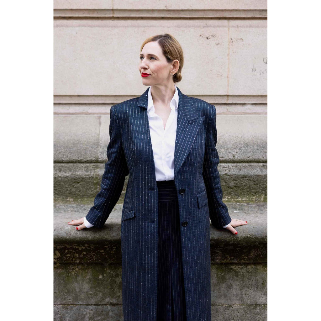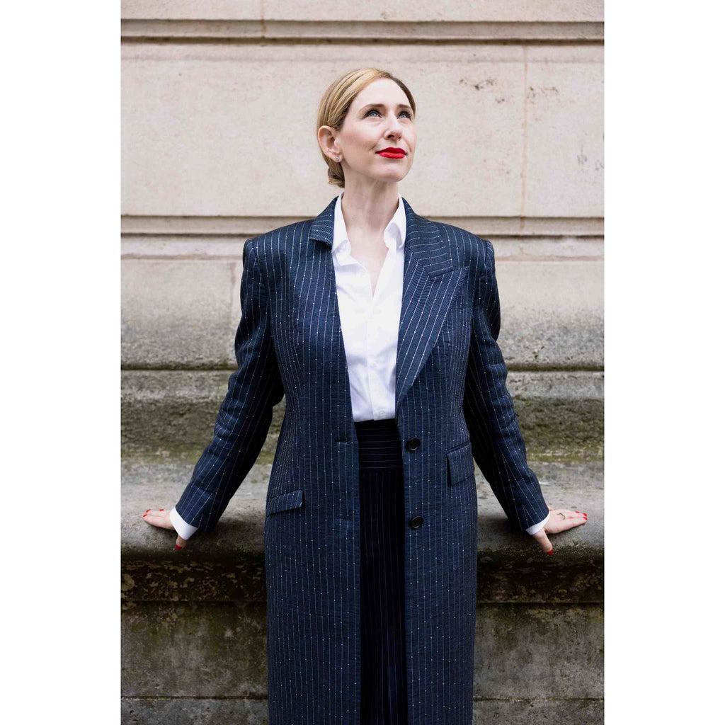 Introducing our Pinstripe Jean Sequin Asymmetrical Collar Coat, a standout piece that combines sophistication with a touch of glam. This unique coat features a stylish pinstripe design and an eye-catching asymmetrical collar, creating a modern silhouette.