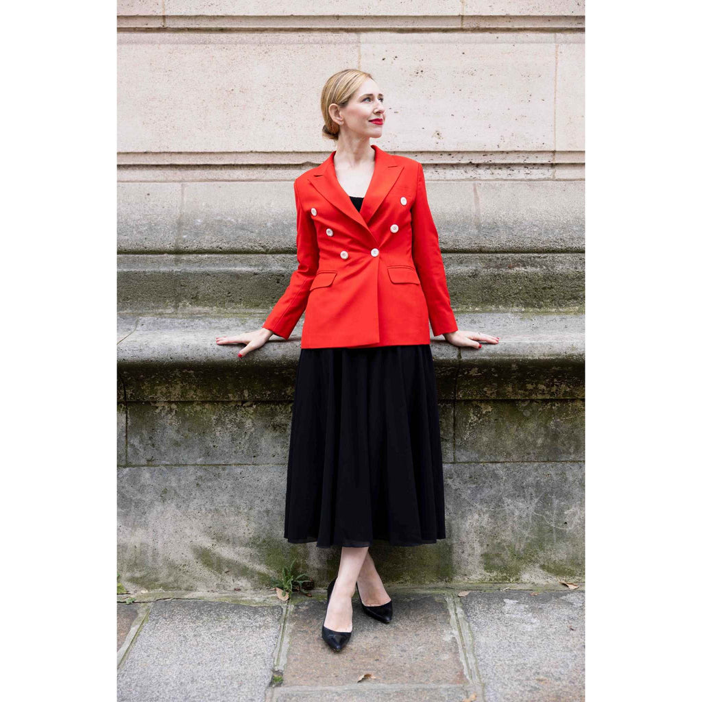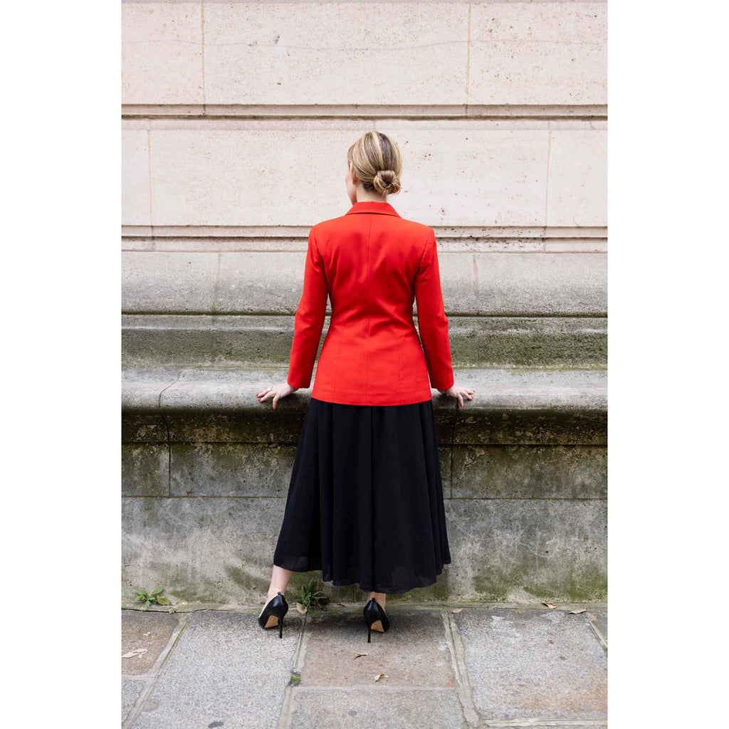 Step up your style with our Red Tailored Blazer with White Buttons, a chic and sophisticated addition to any wardrobe. This blazer features a sleek, tailored fit that flatters your silhouette, providing a polished look for both professional and casual settings.